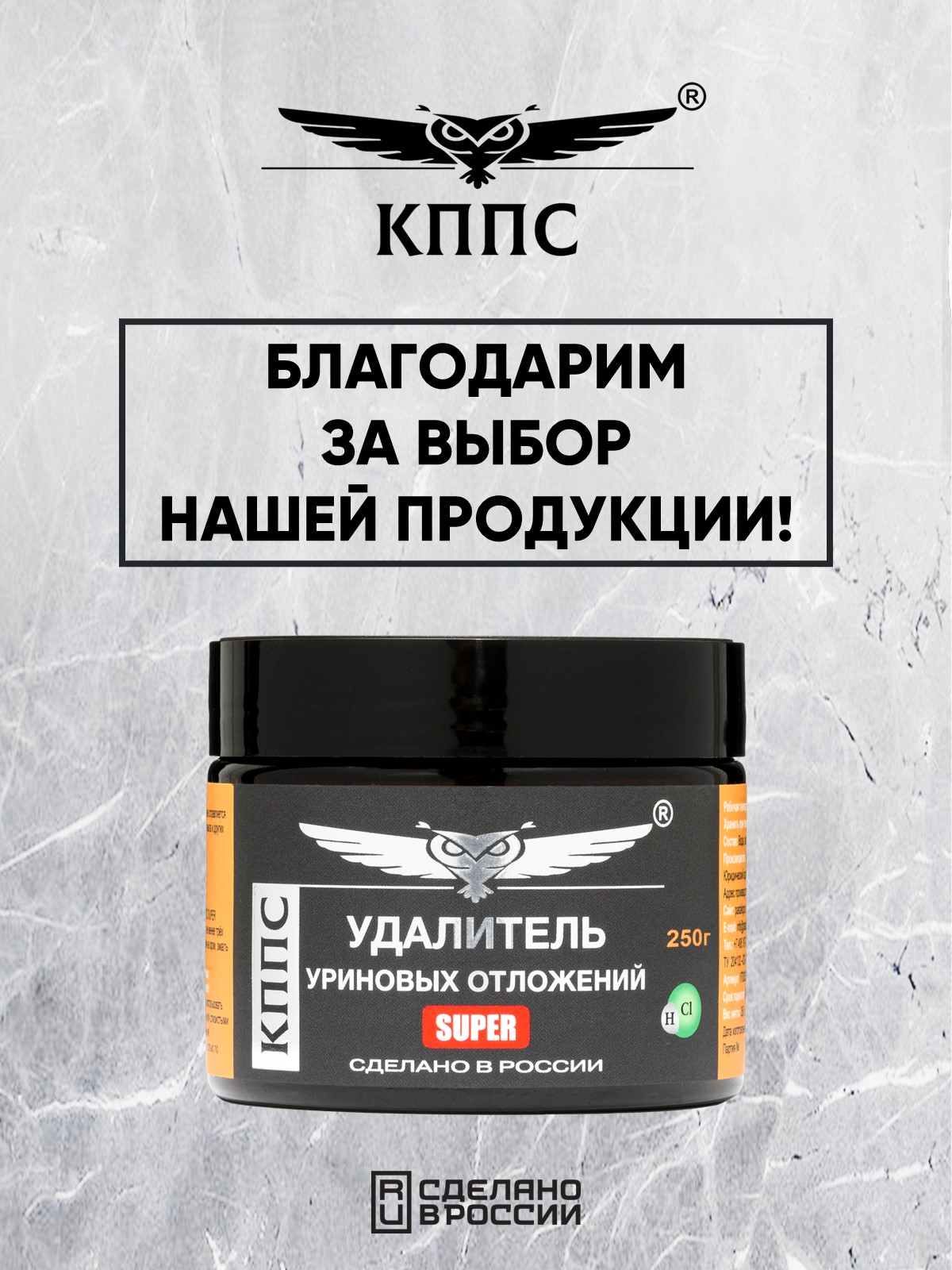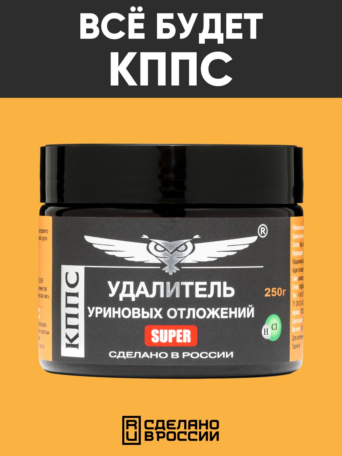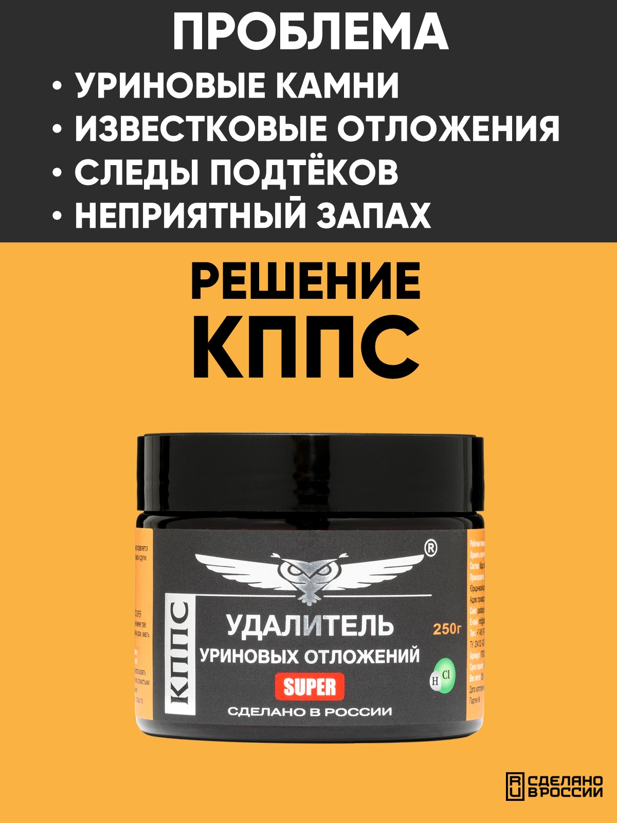 Технические характеристики Удалитель уриновых и известковых отложений КППС SUPER (250г)