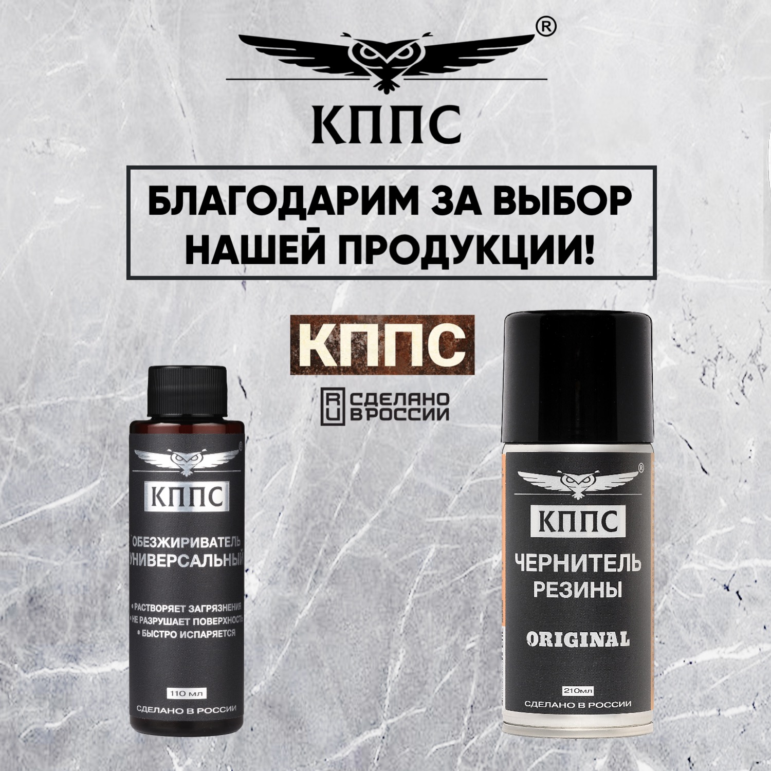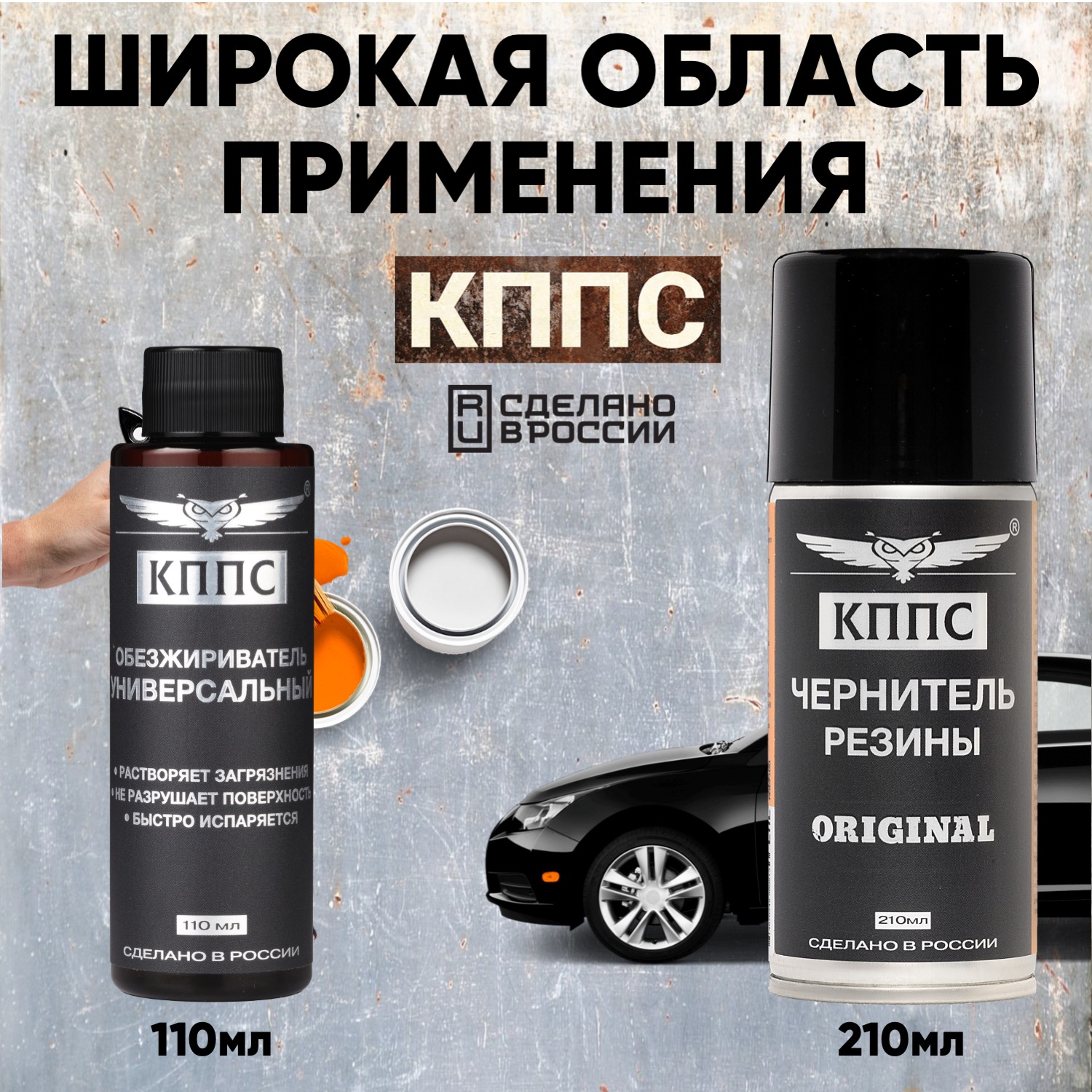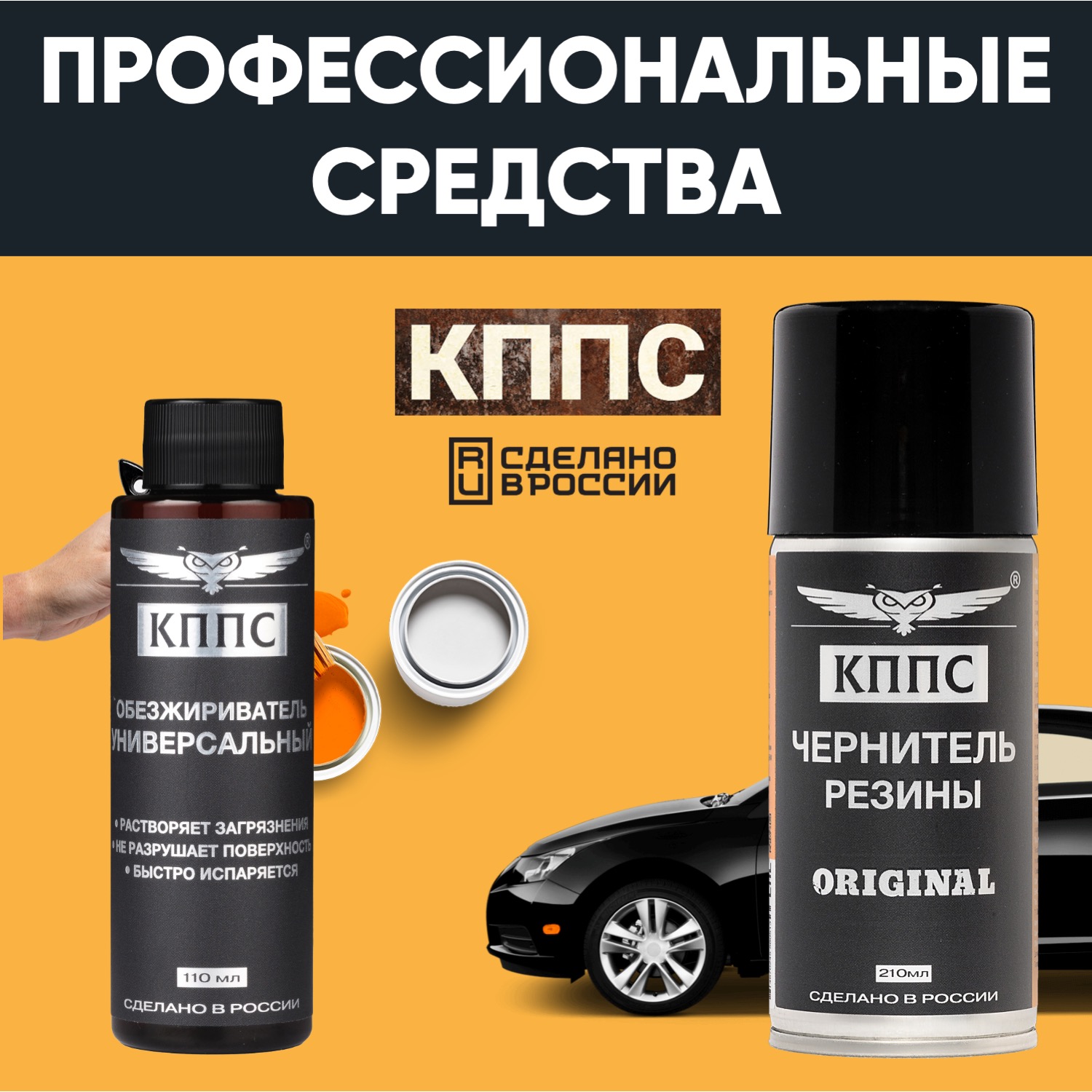 Универсальный обезжириватель КППС (110мл) + Чернитель резины КППС (210мл)